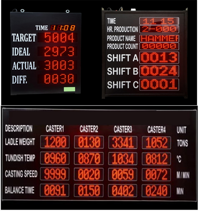 We supply LED Process Display tailor made to customer’s requirement, for more than Eight Years. These Display Systems give unique opportunities to improve the power of communication with increased efficiency in day to day activities. With Variety of sizes, flexibility and highly competitive prices, these advanced display systems stands way apart from the conventional displays. Whether it is numbers, single or multi-line text with Static or Rolling features, graphs, Signs and logos.